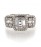 18KT WHITE GOLD 3-STONE ILLUSION DIAMOND RING CONTAINS 15 BAGUETTE DIAMONDS WEIGHING .46 CT AND 64 FULL CUT DIAMONDS WEIGHING .40 CT.