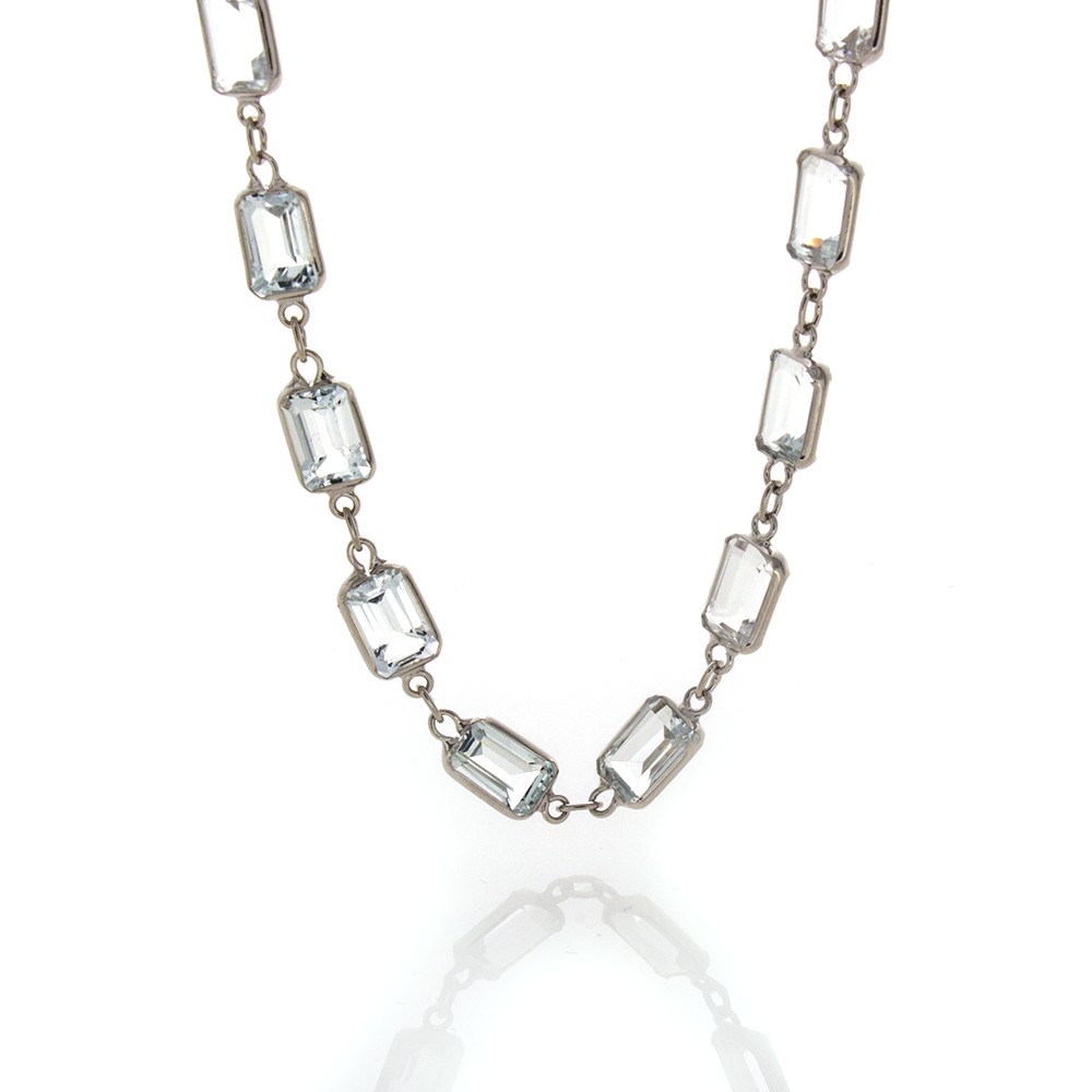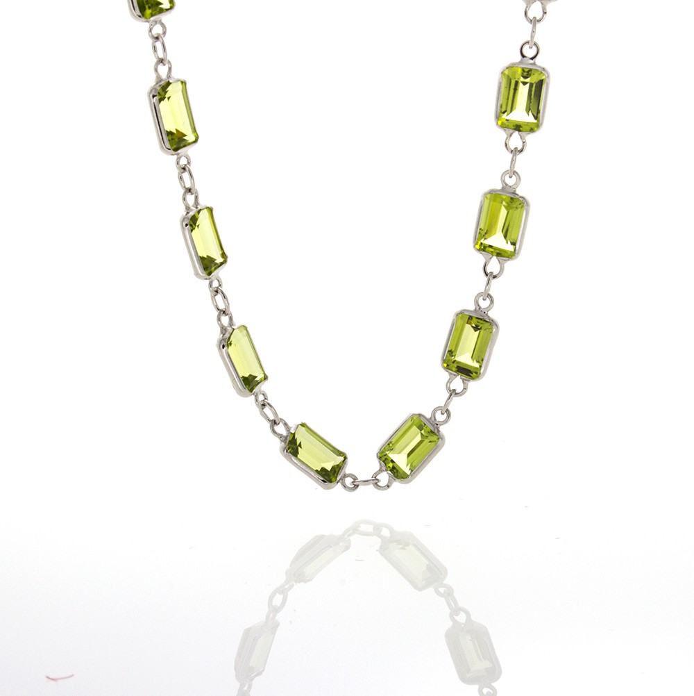 GEMSTONE NECKLACES IN EIGHTEEN CARAT WHITE OR YELLOW GOLD ARE 18 INCHES IN LENGTH AND CONTAIN BETWEEN 16 AND 30 CARATS OF GEMS DEPENDING ON THE STYLE AND GEM. PRICES RANGE BETWEEN $1,000-$1,250.