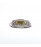 AN EIGHTEEN CARAT WHITE GOLD RING CONTAINS FIVE CUSHION CUT DIAMONDS IN DIFFERENT COLORS WEIGHING A TOTAL OF .71 CARAT THAT ARE FRAMED WITH 32 FULL CUT DIAMONDS WEIGHING .15 CARAT.